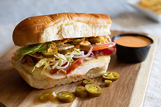 *Comes with our fresh sliced lettuce, tomato, onion, pickles and mayo unless noted.